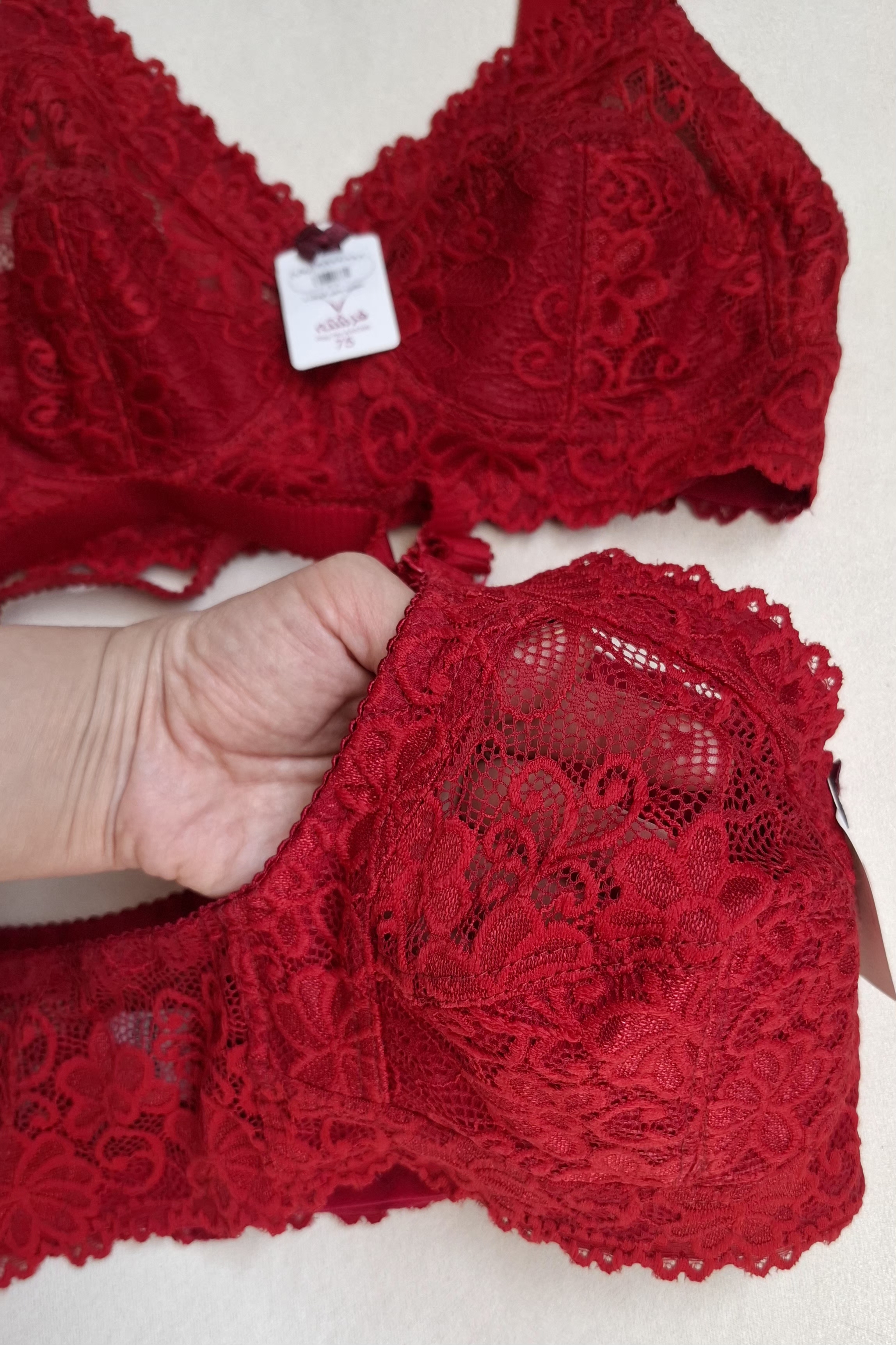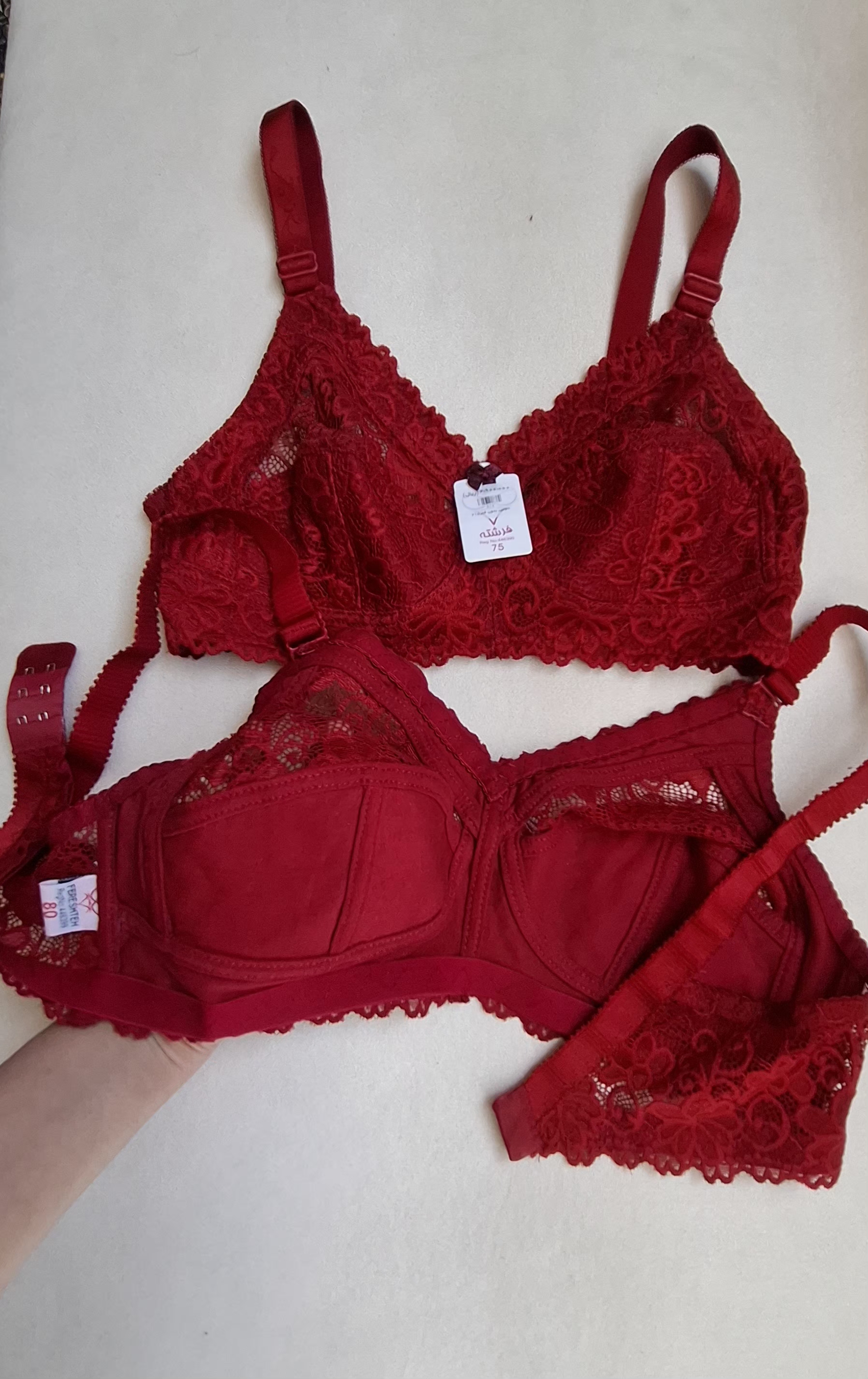 جنس سوتین گیپور . کاملا کاپ سینه را پوشش میده .بسیار نرم و لطیف .داخل کاپ سوتین نخ کار شده برای کسانی ک بدن حساس دارن این آپشن عالی .کش زیر سینه سوتین دوسانت کار شده .ک باعث میشه سینه را محکم نگه داره .دستک های سوتین از جنس خود سوتین گیپور و بندهای سرشانه سوتین محکم