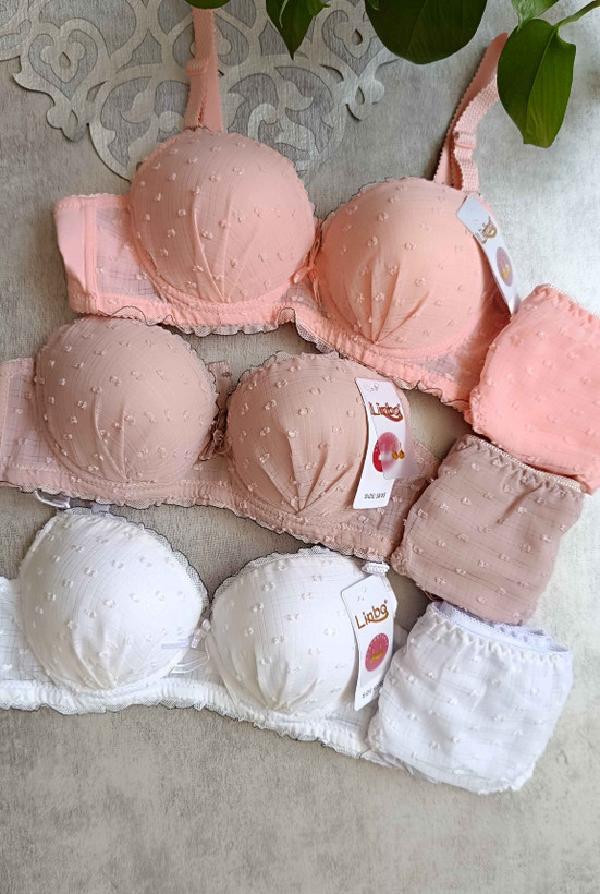 ست شورت و سوتین فنردار اسفنجی نیم جک وارداتی کار بسیار شیکو ظریف جنس کاپ سوتین از حریر اشکی و جنس کمری و پشت شورت از جنس نخ میباشد جلوی شورت حریر فاق شورت نخی دولایه ...اندازه فاق شورت کوتاه .مناسب کاپaو b ...مناسب استفاده روزانه ...سایزبندی ۷۵ تا ۹۰ ...ولی نکته قابل توجه سوتین اسفنجی نیم جک و جکدار ی سایز بزرگتر از سوتین اسفنجی تو خالی توصیه میشود سایز۷۵دورکمر۳۴مناسب سایز65