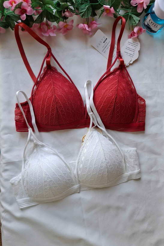 سوتین اسفنجی کاپ ثابت هارنس دار گیپوری بدون فنر کاپ مثلثی دستک ها شیشه ای بند سرشانه قابل تنظیم با کیفیت و عالی تن خور جذاب سایز lxl.مناسب ۷۰ الی۸۰ در دوردیف سه تایی غزن .نیم جک کوچک در کنار کاپ سوتین برای لیفت سینه