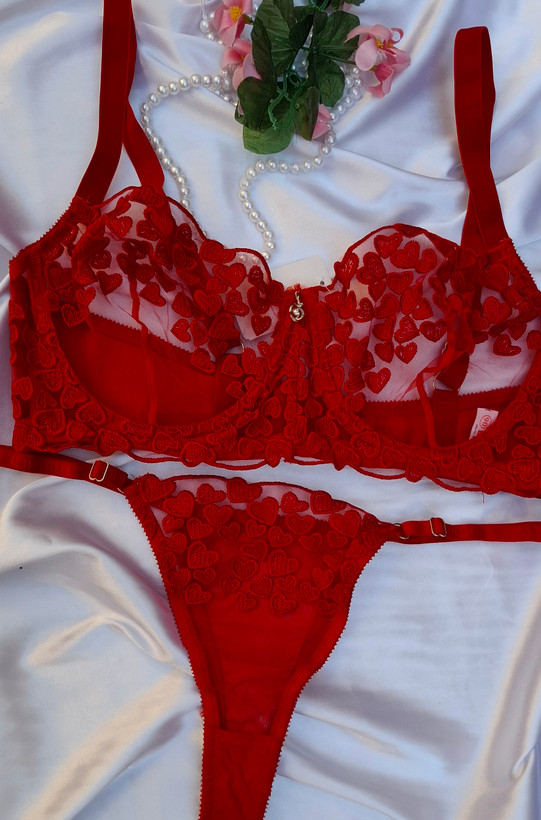 ست سوتین شورت زیر فنردار قلبی تور گاز کارن