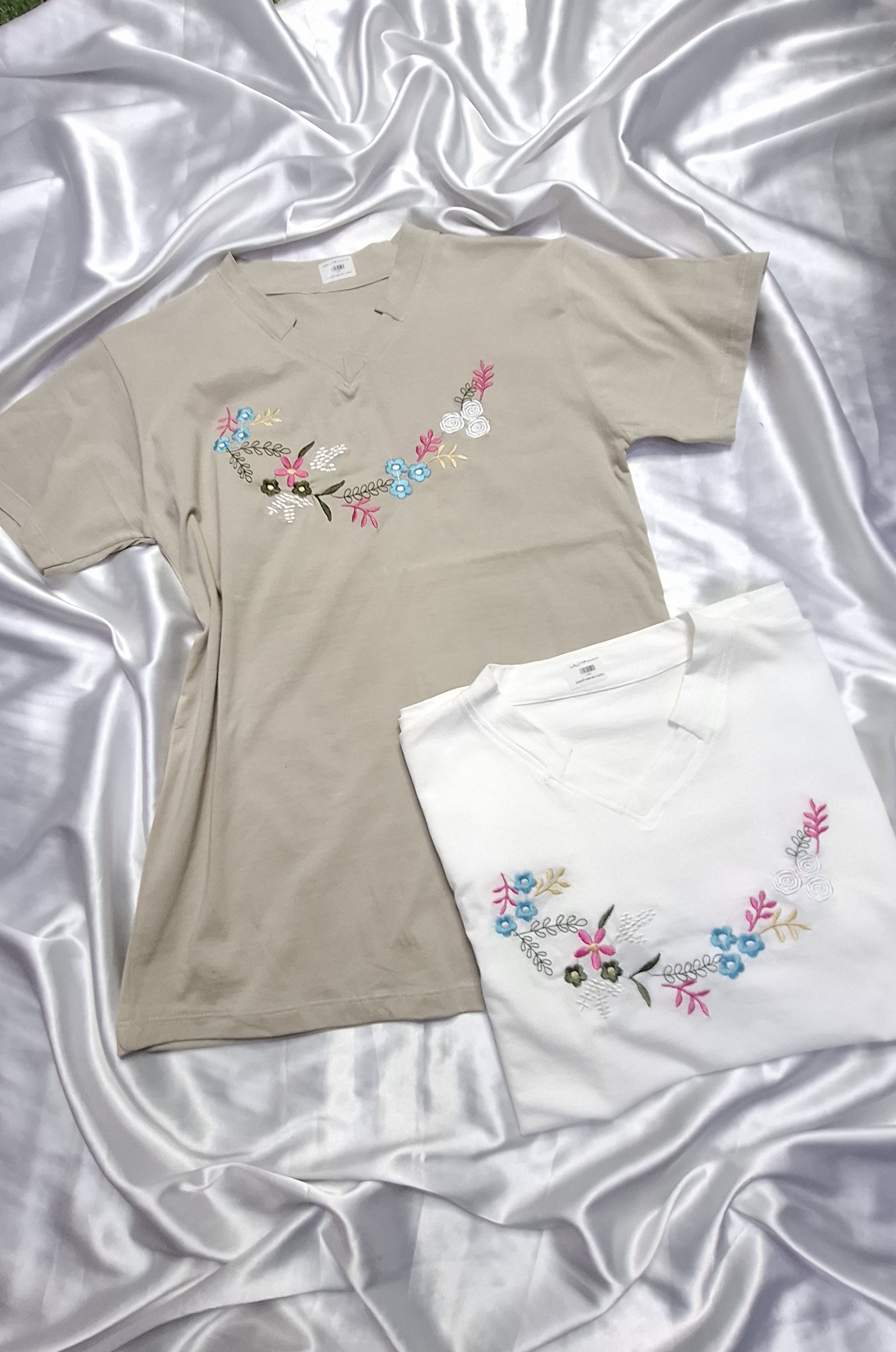 تیشرت زنانه استین کوتاه گلدوزی یقه هفت نخ پنبه۲۴۰٬۰۰۰ تومان